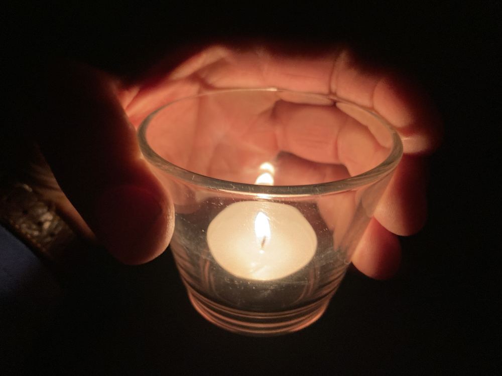 Die Menschen wurden eingeladen, ein Teelicht in einem Glas in die Mitte zu tragen. Es erforderte große Anstrengung, es brauchte oft mehrere Versuche. So verletzlich wie die kleine Flamme ist der Friede... Ein Friedenstext aus der Mitte begleitet die TeilnehmerInnen in den nächsten Tagen...